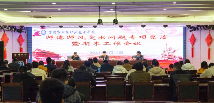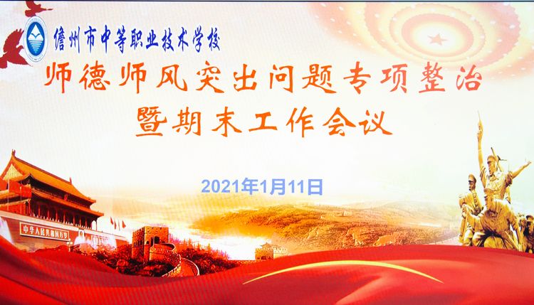 ? ? ? ?为切实贯彻落实儋州市教育局1月7号召开会议的精神,进一步规范教师履职履责行为,落实立德树人根本任务,2021年1月11日,儋州市中等职业技术学校召开师德师风突出问题整治暨期末工作会议。吴昊副校长主持会议,学校全体教职工参加会议。