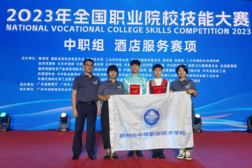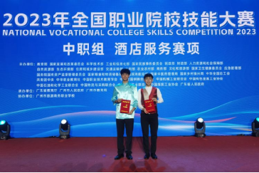 ? ? ? 在全国职业院校技能大赛中职组酒店服务赛项比赛中,我校高星级饭店运营与管理专业学生王盛伟、李业辉喜获三等奖!指导教师:麦浪杰?施芳华?廖雯。