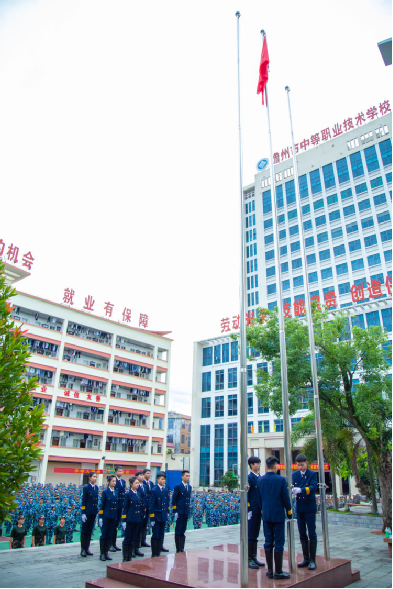 ??????学校举行一次升旗仪式。升旗仪式现场气氛庄重严肃,全体师生的爱国主义情感油然而生,国家安全意识深入人心。