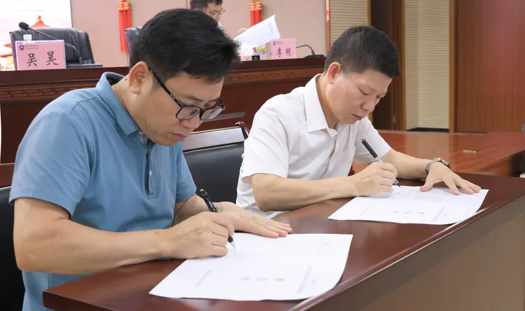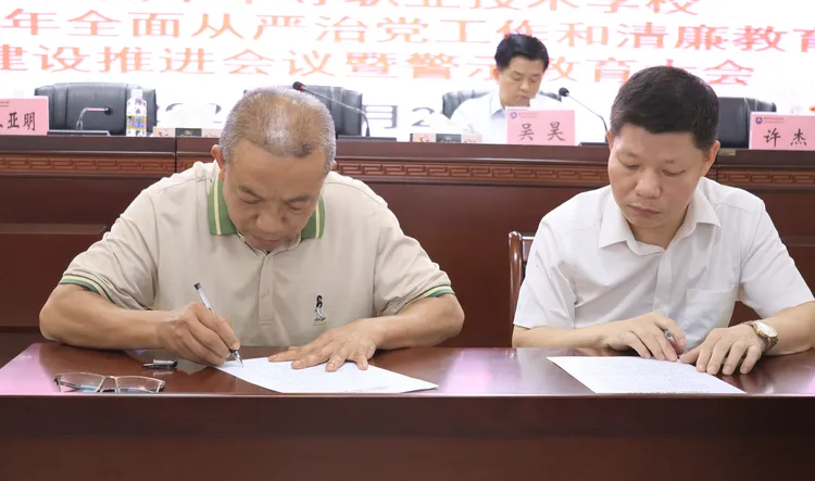 党总支书记、校长吴鹏与党支部书记、科室负责人代表签订《党风廉政建设责任书》。