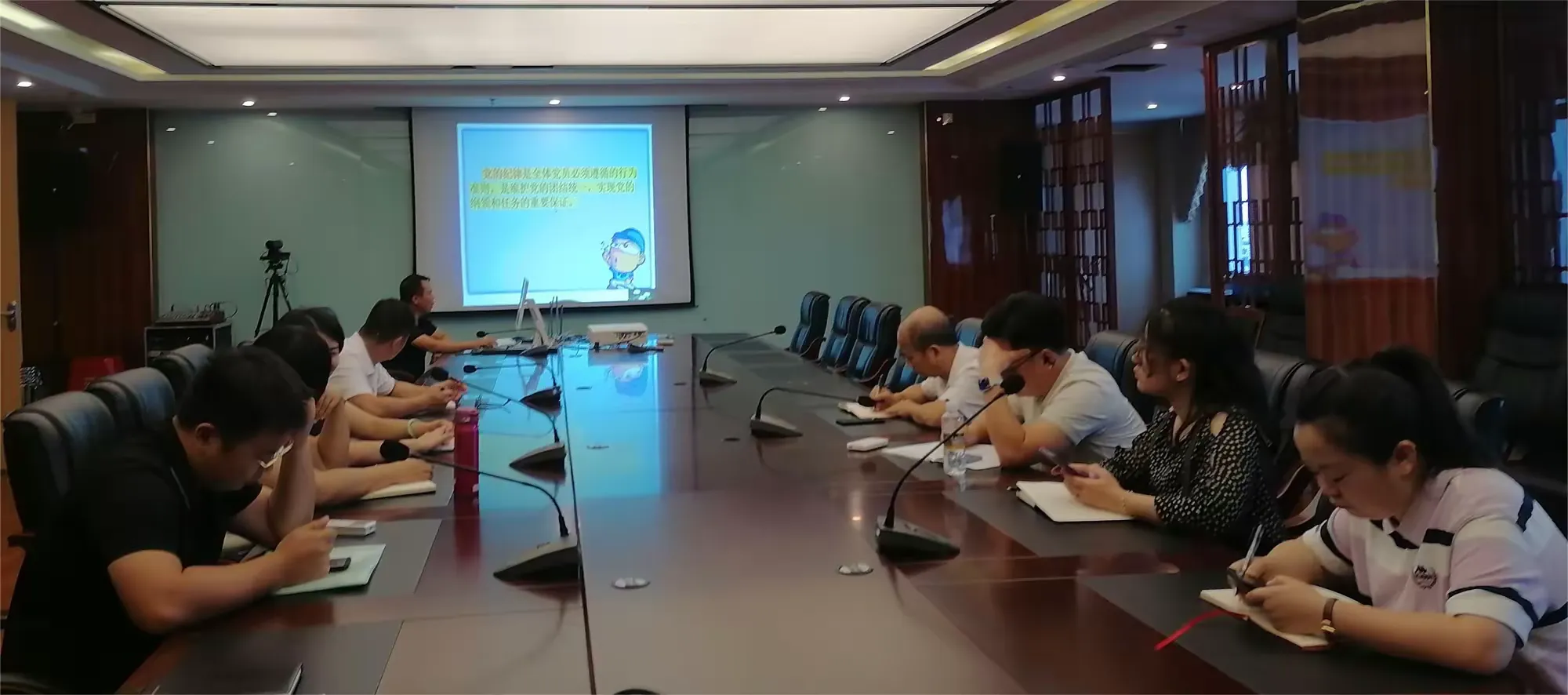 6月24日下午,第一党支部书记许杰讲学习《中国共产党纪律处分条例》纪律党课。他解读了习近平总书记关于加强党的纪律教育的重要论述,阐释了《条例》的纪律要求和学习重点,并通过典型案例,以案说纪,要求大家进一步强化纪律意识、加强自我约束、提高免疫能力。
