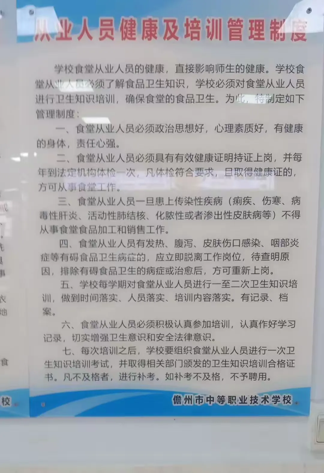 组织一次食堂全员大培训。开学前夕,学校组织本校食堂工作分管人员、食堂管理人员、食堂经营人员、食堂工作人员进行一次涵盖学校食品安全法律法规、食堂管理政策要求、学校食堂食品安全操作规范、学校食品安全责任体系的食品安全专题培训。