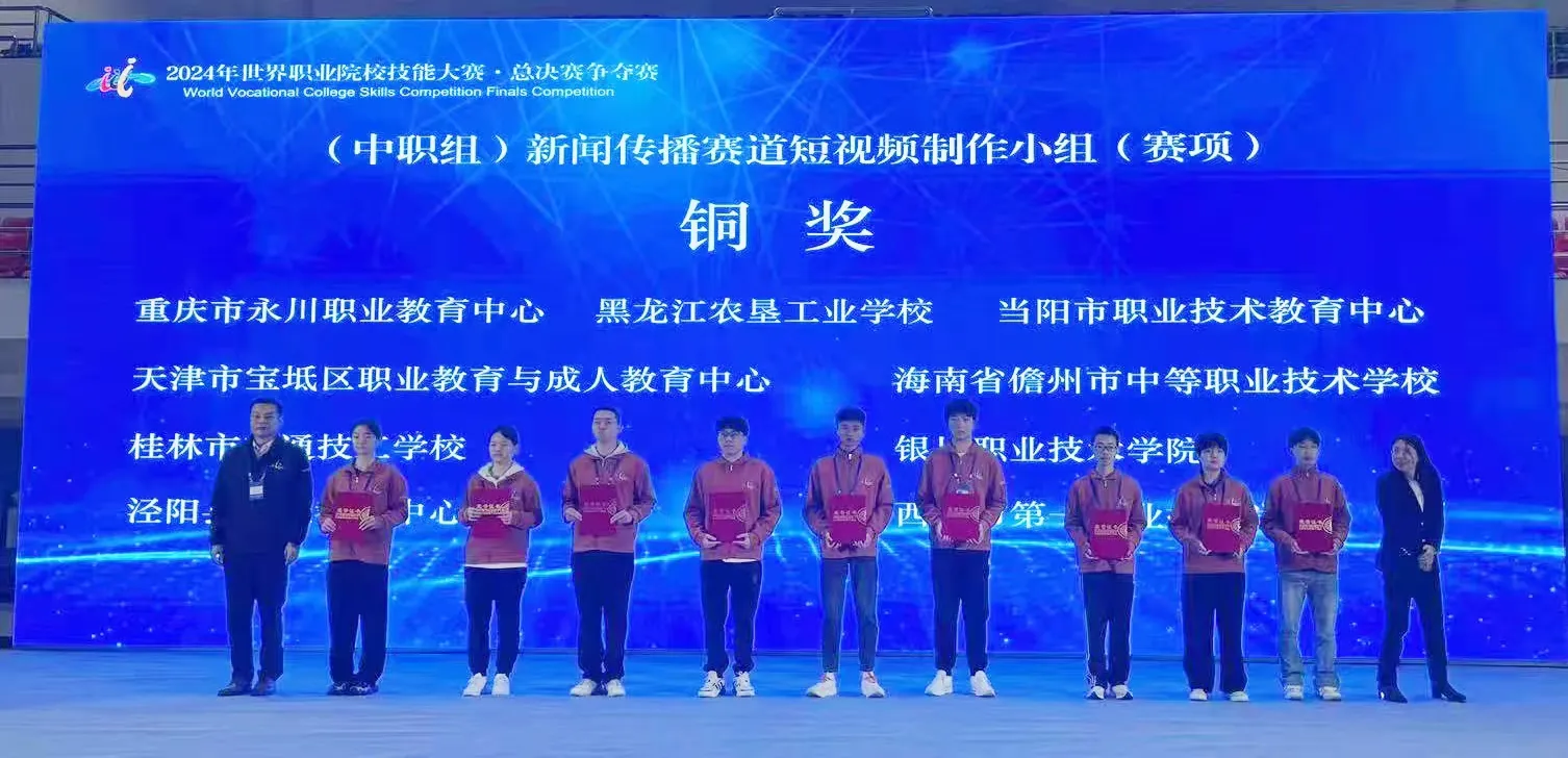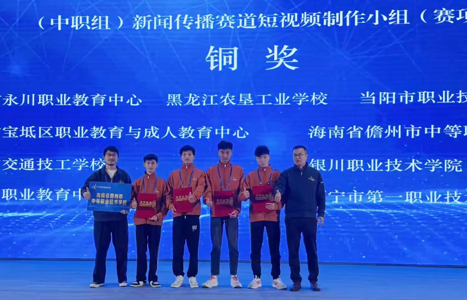 在新闻传播赛道短视频制作赛项中,儋州市中等职业技术学校参赛团队荣获铜奖!