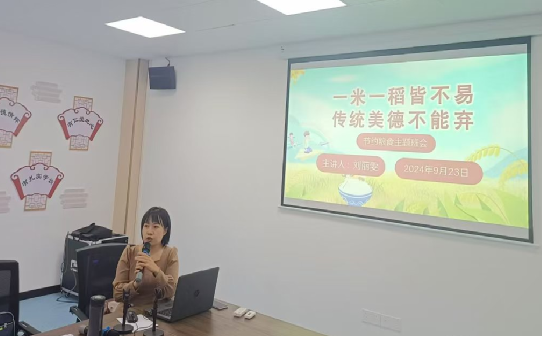 随后,刘丽雯老师从活动背景、活动目标、活动实施、成效反思四个方面进行了详细分享。刘老师指出,当下部分学生浪费粮食现象严重,对粮食的来之不易缺乏深刻认识,结合学情,开展《一米一稻皆不易,传统美德不能弃》为主题的班级活动。通过一系列活动,让学生深入了解粮食生产过程,增强珍惜粮食的意识,养成节约粮食的好习惯。