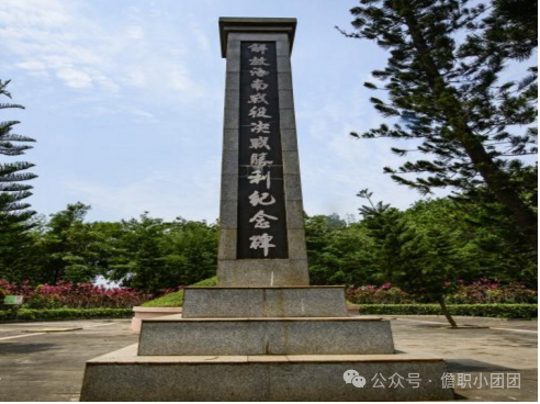 “解放海南战役决战胜利纪念碑”几个大字,字体刚劲有力,仿佛在诉说着那段峥嵘岁月中的英勇与坚韧。背面则刻着渡海登陆部队在美亭地区同国民党军队进行决战的胜利概况,详细记录了这场战役的经过和胜利的意义。