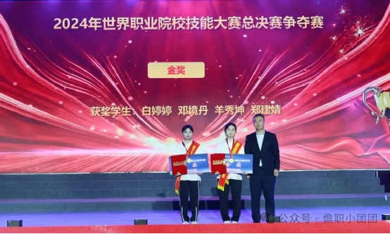 儋州市总工会副主席羊文壮为我校荣获2024年海南省技能大赛金奖师生颁奖。