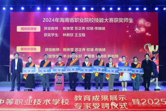 学校副校长吴昊、王亚明为我校荣获2024年海南省技能大赛银、奖师生颁奖。