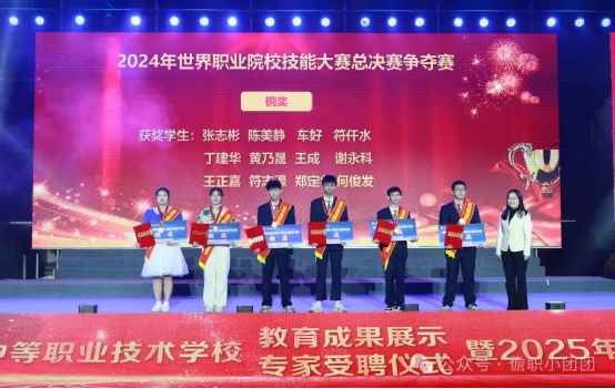 儋州市教育局党委书记、局长杨永飞为我校荣获2024年世界职业院校技能大赛总决赛争夺赛铜金奖学生颁奖。