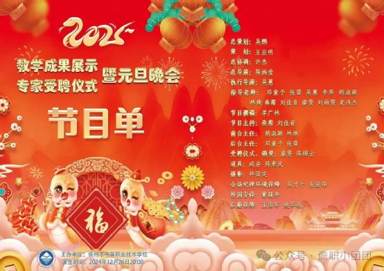 汇聚智慧力量,成就职教梦想。为贯彻落实习近平总书记关于发展职业教育重要指示精神,提升学校办学质量,培养师生奋发向上精神,丰富课余文化生活,展示师生才艺风采,2024年12月26日晚,儋州市中等职业技术学校隆重举办教育成果展示、专家授聘仪式暨2025年"共筑职教梦 歌唱新时代“元旦晚会。