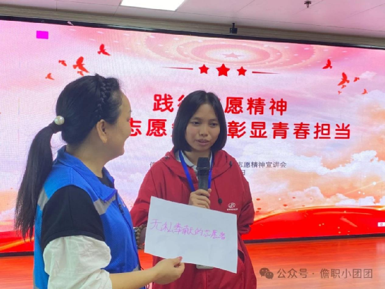 今日儋州市中等职业技术学校发生了一场特殊的交流活动,青年志愿者李冰同志应邀请到校进行了一场主题为“践行志愿服务? 勇当志愿先锋 彰显青春担当”的讲座。此次活动旨在弘扬志愿服务精神,激发学生们的社会责任感和参与公共事务的热情。