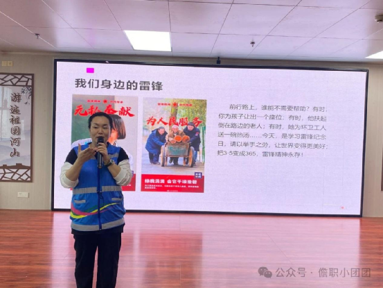 李冰同志从“雷锋精神”出发,向同学们介绍了雷锋的故事和雷锋精神的内涵。她讲述了怎样将这种精神融入到我们的日常生活中,通过身边的小事情体现大爱。